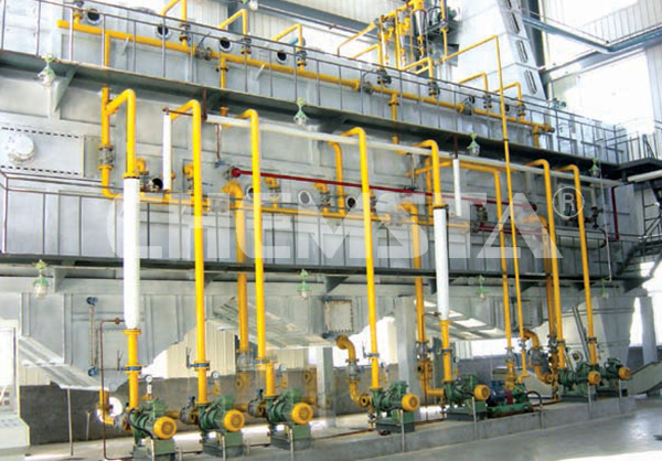 工藝特點:大豆經清理、分級、脫皮、低溫處理、脫脂、低溫脫溶、真空低溫干燥等工段加工后,分別得到大豆油和低溫豆粕(NSI值大于80%)。