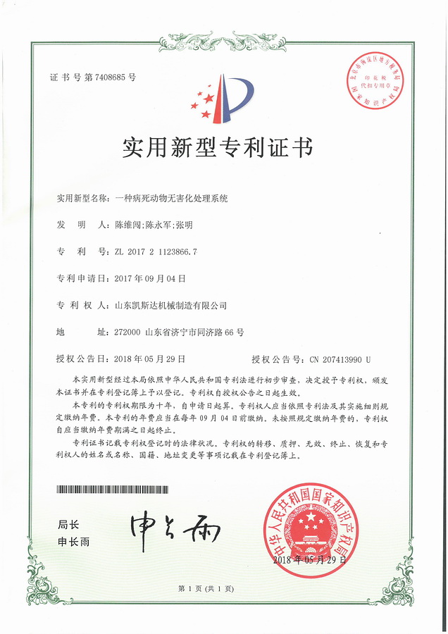 2015年進入無害化處理行業以來,憑借強大的設計能力及豐富的工程經驗,對當時的無害化處理系統工藝進行了整體優化,重點對無害化處理系統的主機-化制干燥機進行了創新性的重新設計,目前該設備在國內技術水平遙遙領先。