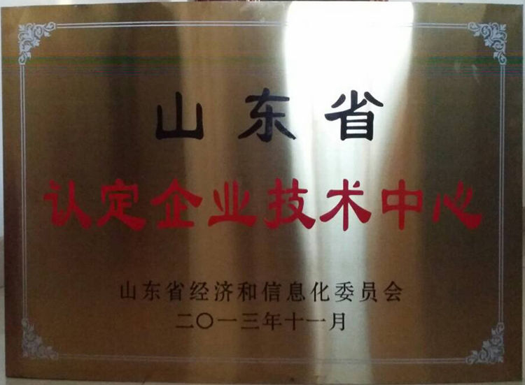 2013年11月,我公司企業技術中心被山東省經信委認定為“省級企業技術中心”。