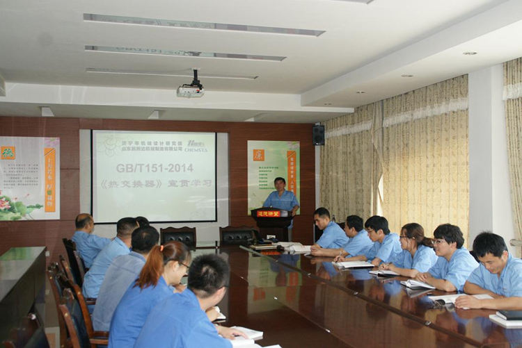 2015年5月30日,我公司組織壓力容器質保體系人員、相關設計人員、相關工藝人員、相關檢驗人員進行了GB/T151-2014《熱交換器》宣貫學習。