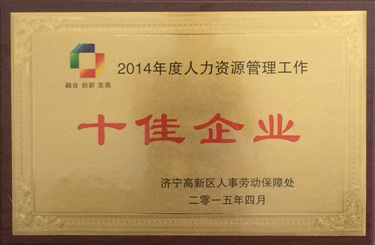 在濟寧高新區2014年度人力資源管理“十佳企業”的評選活動中,凱斯達公司被授予2014年度人力資源管理“十佳企業”榮譽稱號。凱斯達公司一直十分重視人力資源工作,堅持人盡其才、才盡其用的理念,致力于優秀人才的培養與發展。此榮譽是對凱斯達公司人力資源管理工作的肯定和鼓勵。