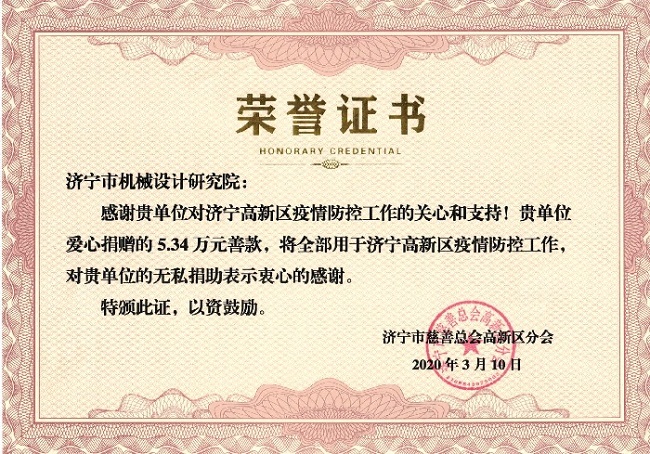 2月初,濟寧市慈善總會高新區分會發起“抗擊新型冠狀病毒感染肺炎疫情”慈善募捐活動,我院號召動員全院員工發揚優良傳統,向濟寧市慈善總會高新區分會愛心捐贈5.34萬元,用于濟寧高新區疫情防控工作,用實際行動積極參與這場疫情防控戰。