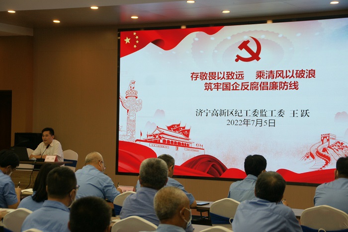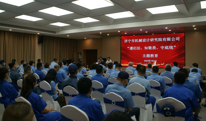 為進一步加強黨風廉政建設,筑牢全體黨員干部廉潔自律防線,7月5日,濟寧市機械設計研究院有限公司開展“遵紀法、知敬畏、守底線”主題教育活動,邀請濟寧高新區紀工委監工委派駐第二紀檢監察組組長王躍上了一堂廉政教育黨課。濟寧市機械設計研究院有限公司黨委副書記、紀委書記劉祖常主持會議。