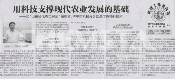 ———記“山東省優(yōu)秀工程師”獲得者、濟寧市機械設計院總工程師林鳳巖